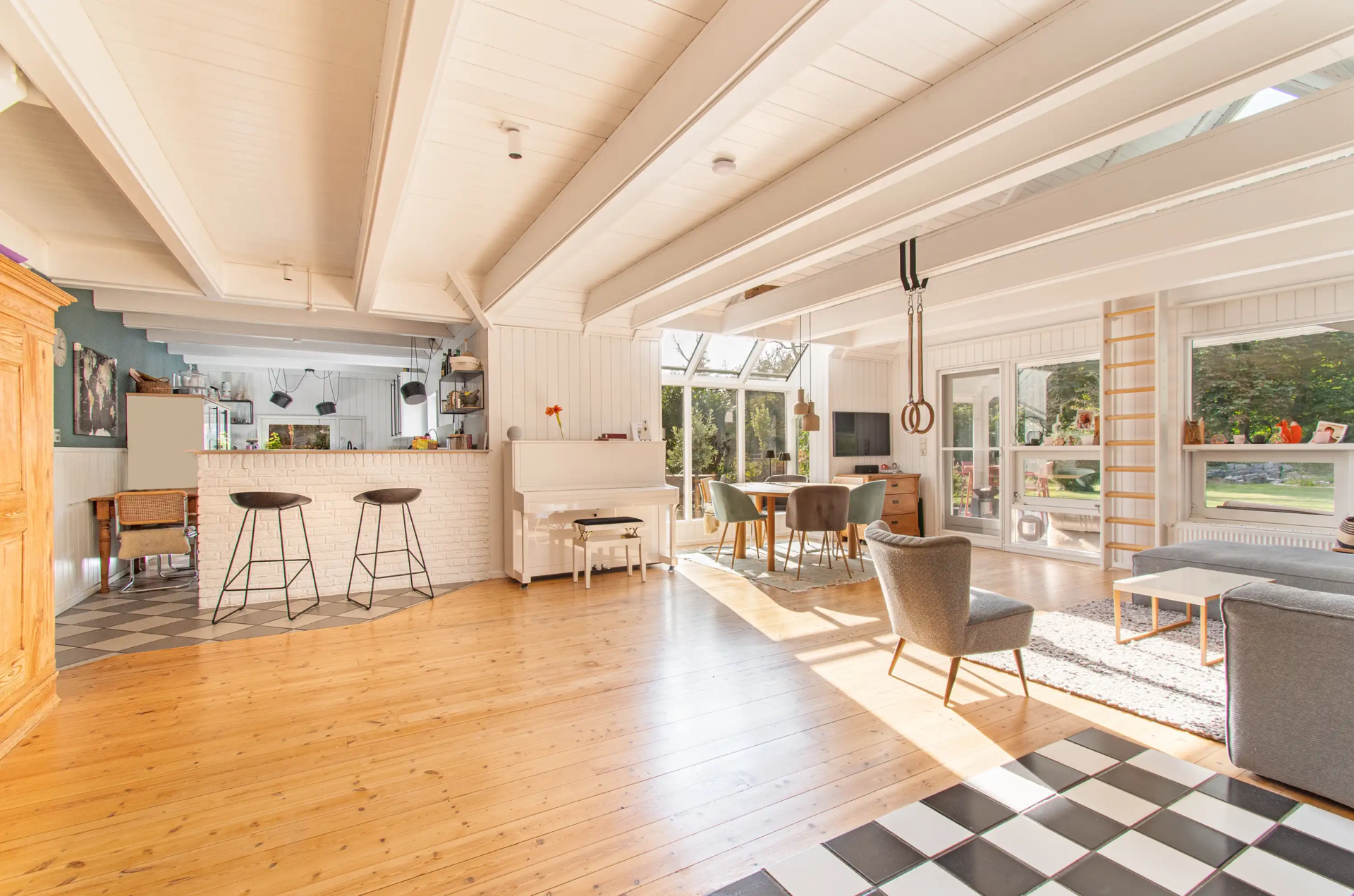 Sie lieben die Natur und Holz? Dann haben wir die perfekte Immobilie für Sie! Dieses Holzständerhaus einer bekannten dänischen Firma wurde mit viel Liebe zum Detail gestaltet und in den vergangenen Jahren kontinuierlich modernisiert. Bei der Danhaus-Bauweise wird Holzständerwerk mit einer Massivstein-Fassade kombiniert, was Danhaus als Klima-Hybrid-Bauweise bezeichnet. Die Häuser werden in einer modernen Fertigung mit Holzständerwerk vorgefertigt und dann mit einer Massivstein-Fassade verkleidet.